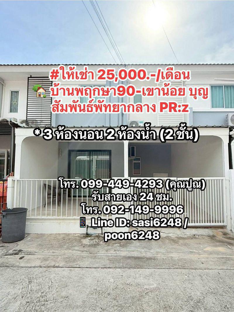 #ให้เช่า 25,000.-/เดือน #บ้านพฤกษา90-เขาน้อย บุญสัมพันธ์พัทยากลาง PR:z