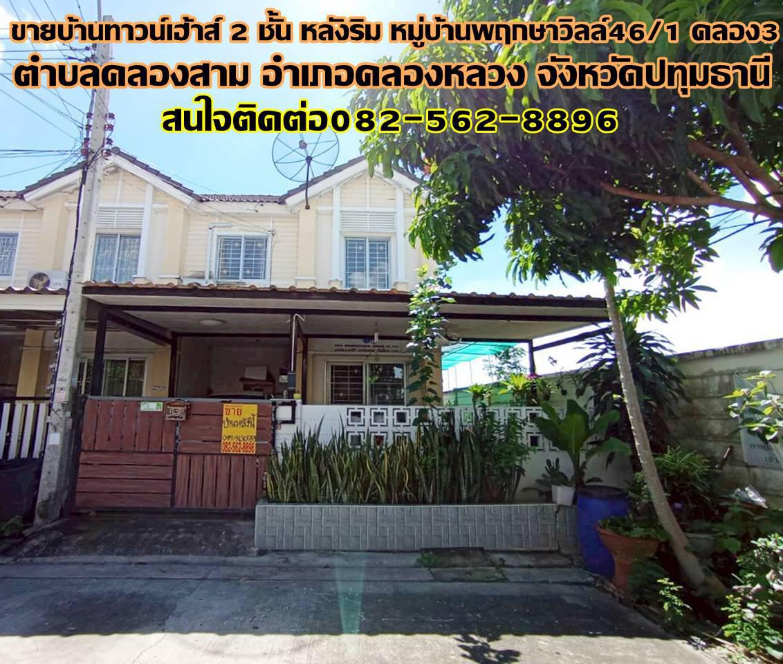 ขายบ้านทาวน์เฮ้าส์ 2 ชั้น หลังริม หมู่บ้านพฤกษาวิลล์46/1 คลอง3