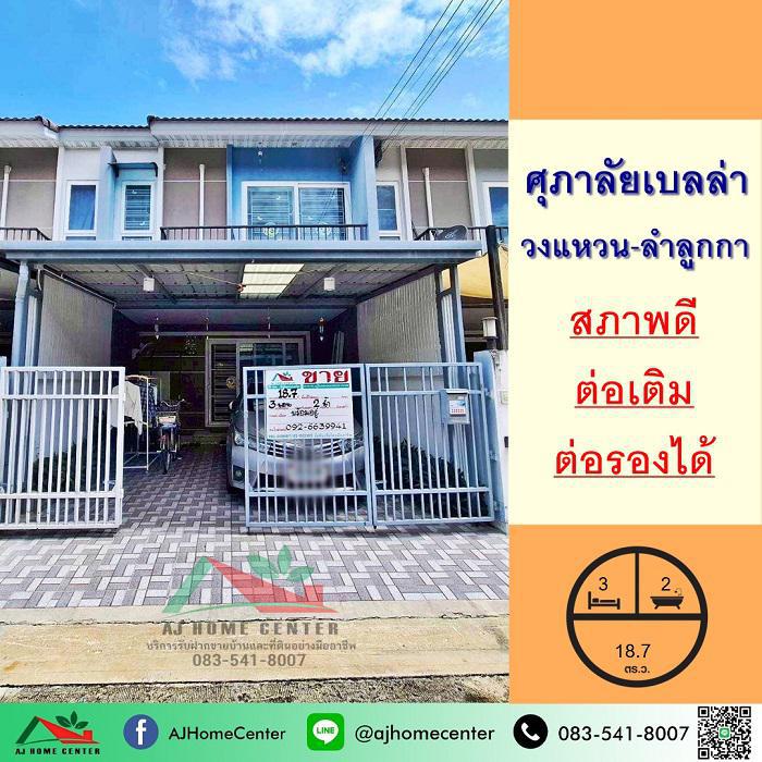 ขายทาวน์เฮ้าส์18.7ตรว. ม.ศุภาลัย เบลล่า วงแหวน-ลำลูกกา สภาพดี ต่อเติมครบ จัดกู้ฟรี