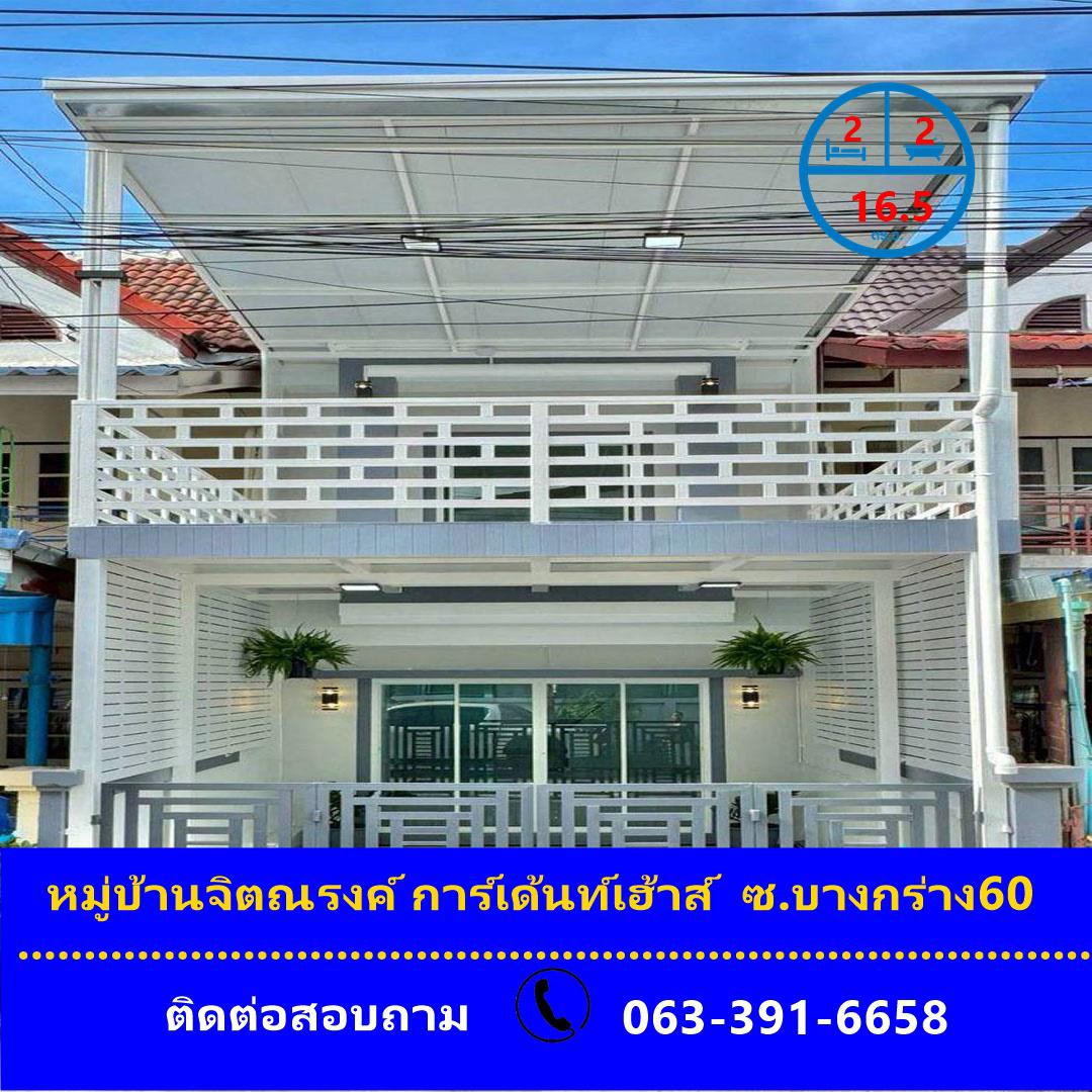 ขายทาวน์เฮ้าส์ เนื้อที่ 16.5 ตร.ว หมู่บ้านจิตณรงค์ การ์เด้นท์เฮ้าส์ ซอยบางกร่าง60 รีโนเวท จัดกู้ฟรี