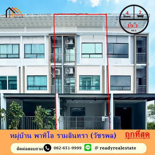 ขายถูกสุดทาวน์โฮม 3 ชั้น 19.3 ตร.ว ม.พาทิโอ วัชรพล-รามอินทรา ใกล้ Central รามอินทรา ฟรีโอน