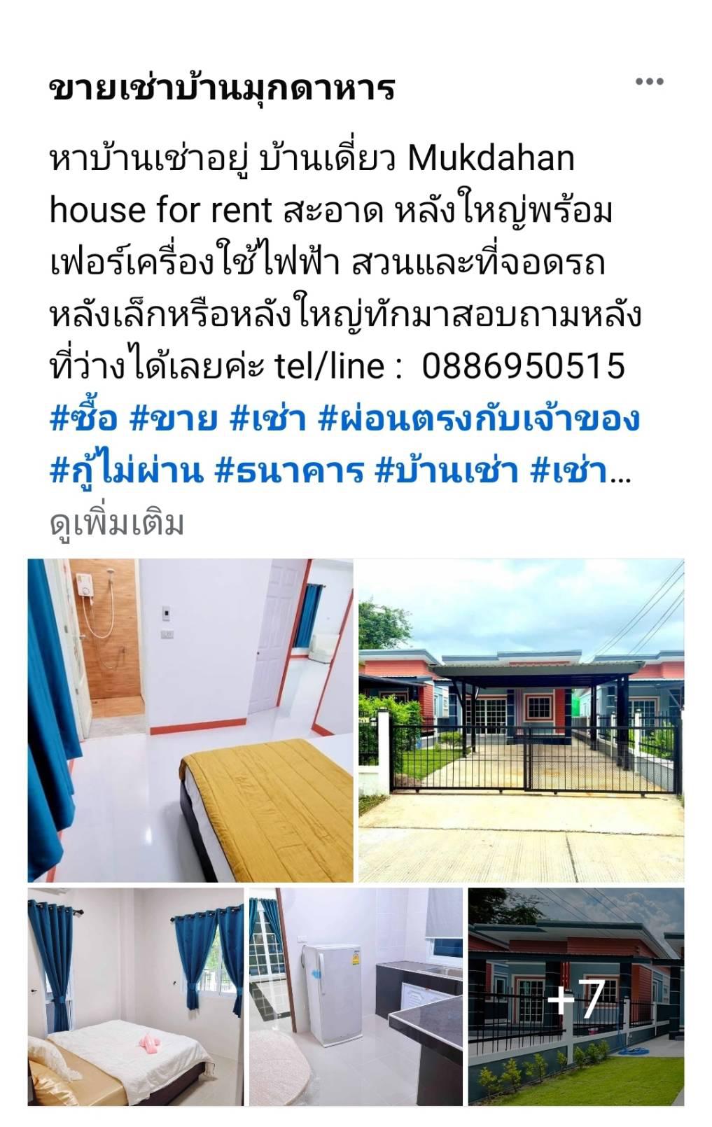 หาบ้านเช่าอยู่ บ้านเดี่ยว Mukdahan house for rent สะอาด หลังใหญ่พร้อมเฟอร์เครื่องใช้ไฟฟ้า สวนและที่จอดรถ หลังเล็กหรือหลังใหญ่ทักมาสอบถามหลังที่ว่างได้เลยค่ะ tel/line : 0886950515