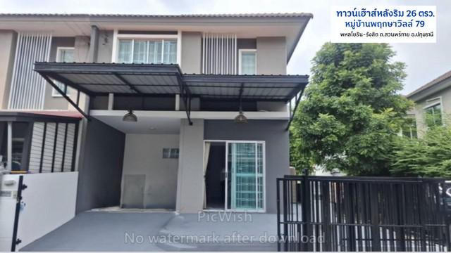 ขายถูกกว่าราคาประเมินทาวน์เฮ้าส์ 2 ชั้น renovate สวย หลังริม 26 ตรว.ทำเลดีมาก หมู่บ้านพฤกษาวิลล์79ใกล้สตูริโอเวิล์คพอยท์ พหลโยธิน-รังสิต ติดถนนเลียบคลองเปรมประชากร มีรถสองแถวผ่านหน้าหมู่บ้าน