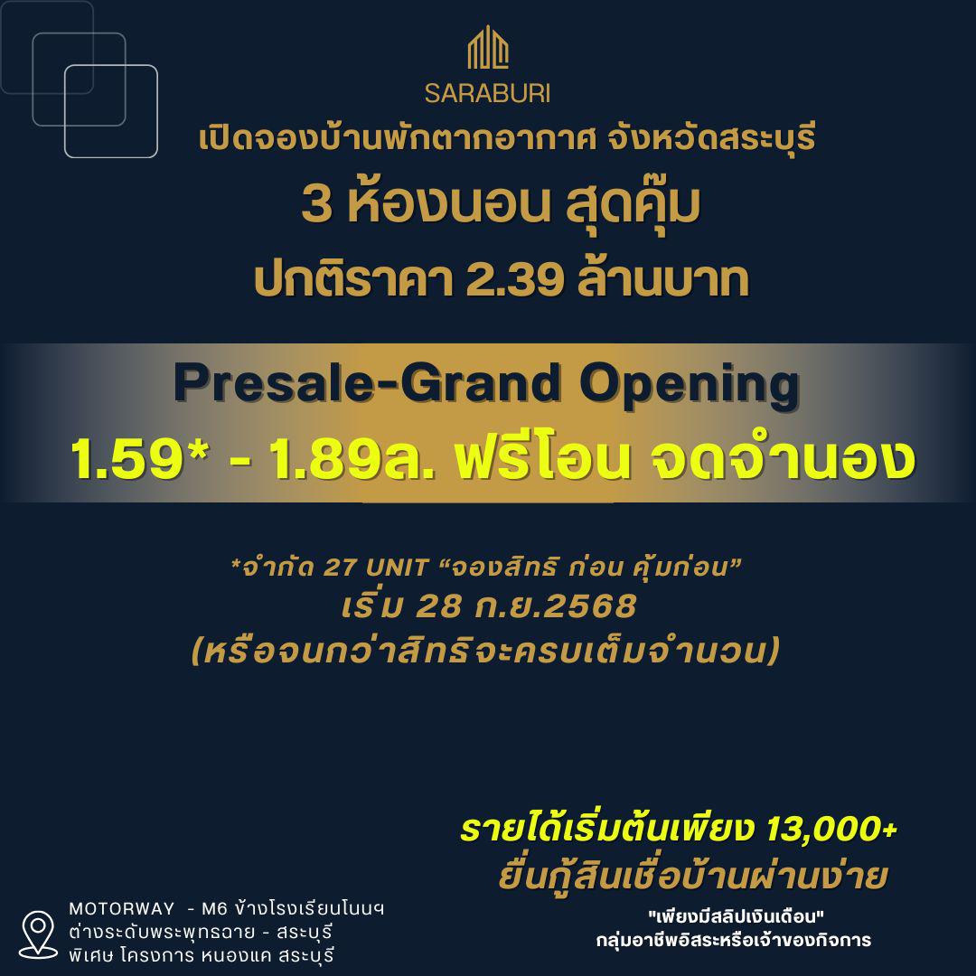 บ้านพักตากอากาศ จังหวัดสระบุรี 3 ห้องนอน สุดคุ๊ม รายได้เริ่มต้นเพียง 13,000+ ยื่นกู้สินเชื่อบ้านผ่านง่าย แผนดินทอง
