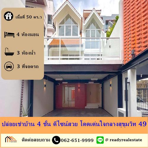 ให้เช่าบ้าน 4 ชั้น ดีไซน์สวย โดดเด่นใจกลางสุขุมวิท 49 | เดินถึง BTS ทองหล่อ | เหมาะทั้งทำธุรกิจและอยู่อาศัย