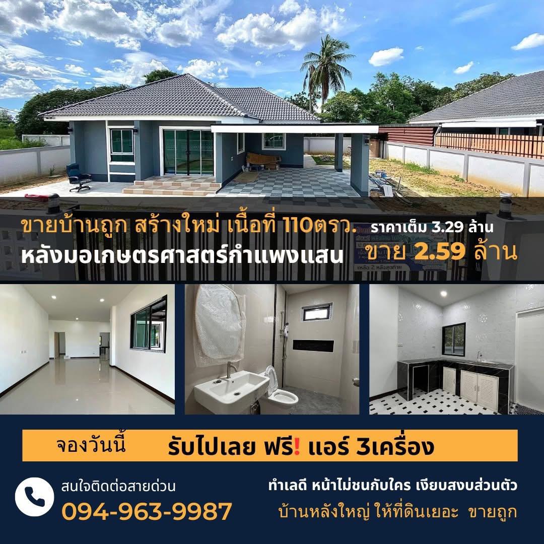 ด่วนขายถูก บ้านพร้อมที่ดินกำแพงแสน สร้างใหม่/หลังใหญ่ ให้ที่ดินเยอะ เนื้อที่110ตรว. ใกล้มอเกษตรศาสตร์
