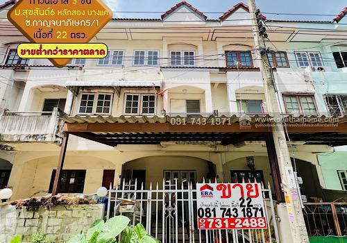 - ทาวน์เฮ้าส์ 3 ชั้น หมู่บ้านสุขสันต์6 ติดถนนกาญจนาภิเษก