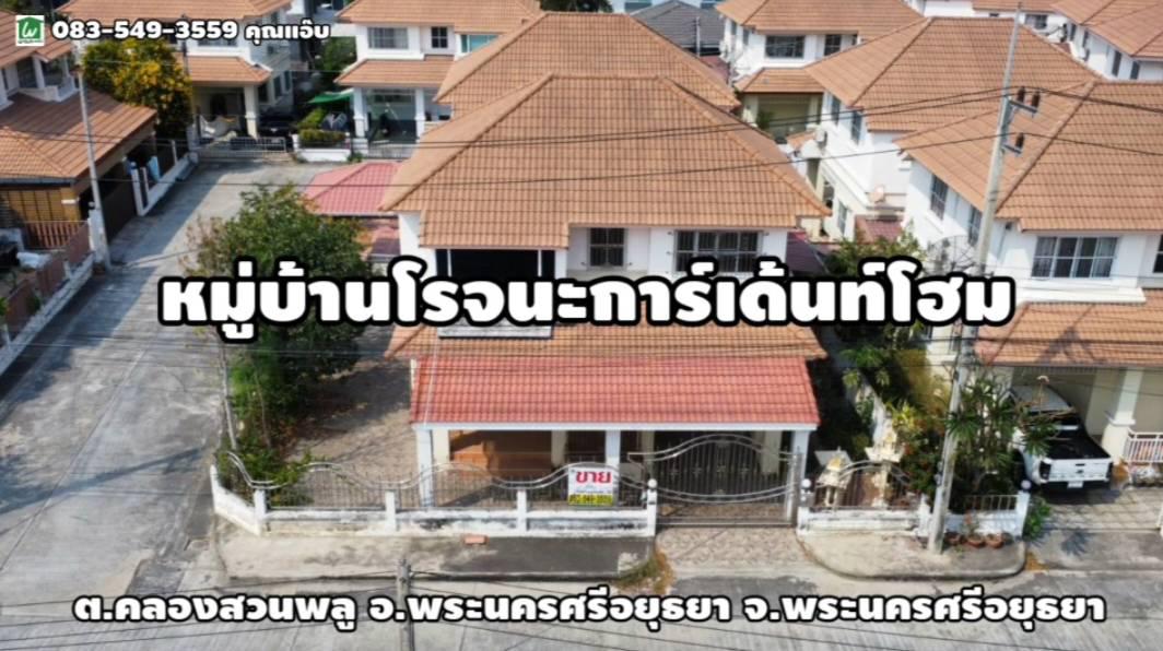 หมู่บ้านโรจนะการ์เด้นท์โฮม ติดถนนเส้นเมนกว้างมาก หัวมุม-ปากซอย 34 ต.คลองสวนพลู อ.พระนครศรีอยุธยา จ.พระนครศรีอยุธยา