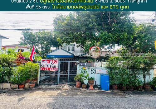 ขายบ้านเดี่ยว2ชั้นซอยจามร 31 ข ปลูกสร้างเองครึ่งตึกครึ่งไม้ ถนนลำลูกกา พื้นที่ 56 ตรว. ขาย 2.8 ล้านบาท ใกล้สนามกอล์ฟธูปเตมีย์,เซียร์ รังสิต,BTS คูคต