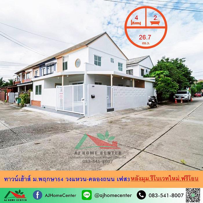 ขายทาวน์เฮ้าส์26.7ตรว. 4นอน2น้ำ หลังมุม ม.พฤกษา54 วงแหวน-คลองถนน เฟส3 รีโนเวทใหม่ ฟรีโอน