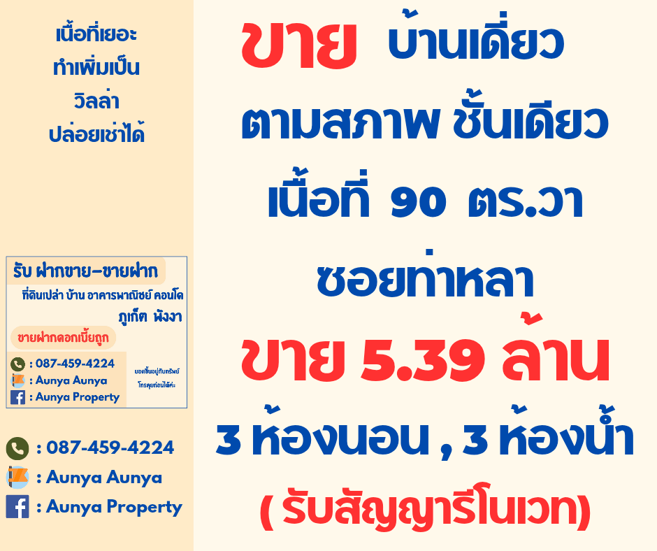 ประกาศที่ท่านเห็นอยู่นี้เป็นประกาศที่ผู้ต้องการซื้อขาย (อาจเป็นเจ้าของหรือนายหน้า) ได้นำเนื้อหาและรูปภาพมาลงไว้ด้วยตนเอง กรุณาตรวจสอบข้อมูลผู้ซื้อขาย และตรวจสอบอสังหาริมทรัพย์ก่อนทำการซื้อขายจริง ข้อมูล/รูปภาพผู้ประกาศจะรับผิดชอบทั้งหมด
