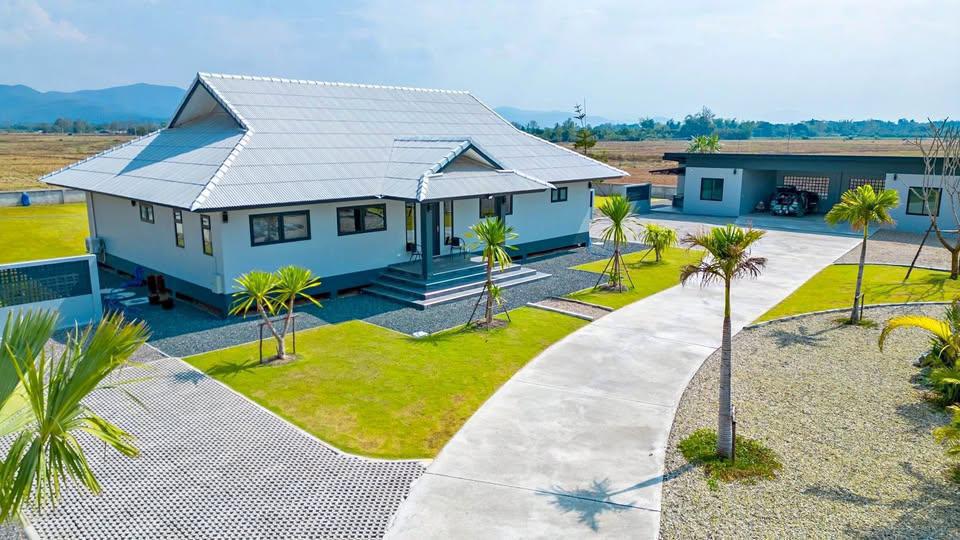 # บ้านเดี่ยวชั้นเดียว ตกแต่งด้วยวัสดุเกรดดี