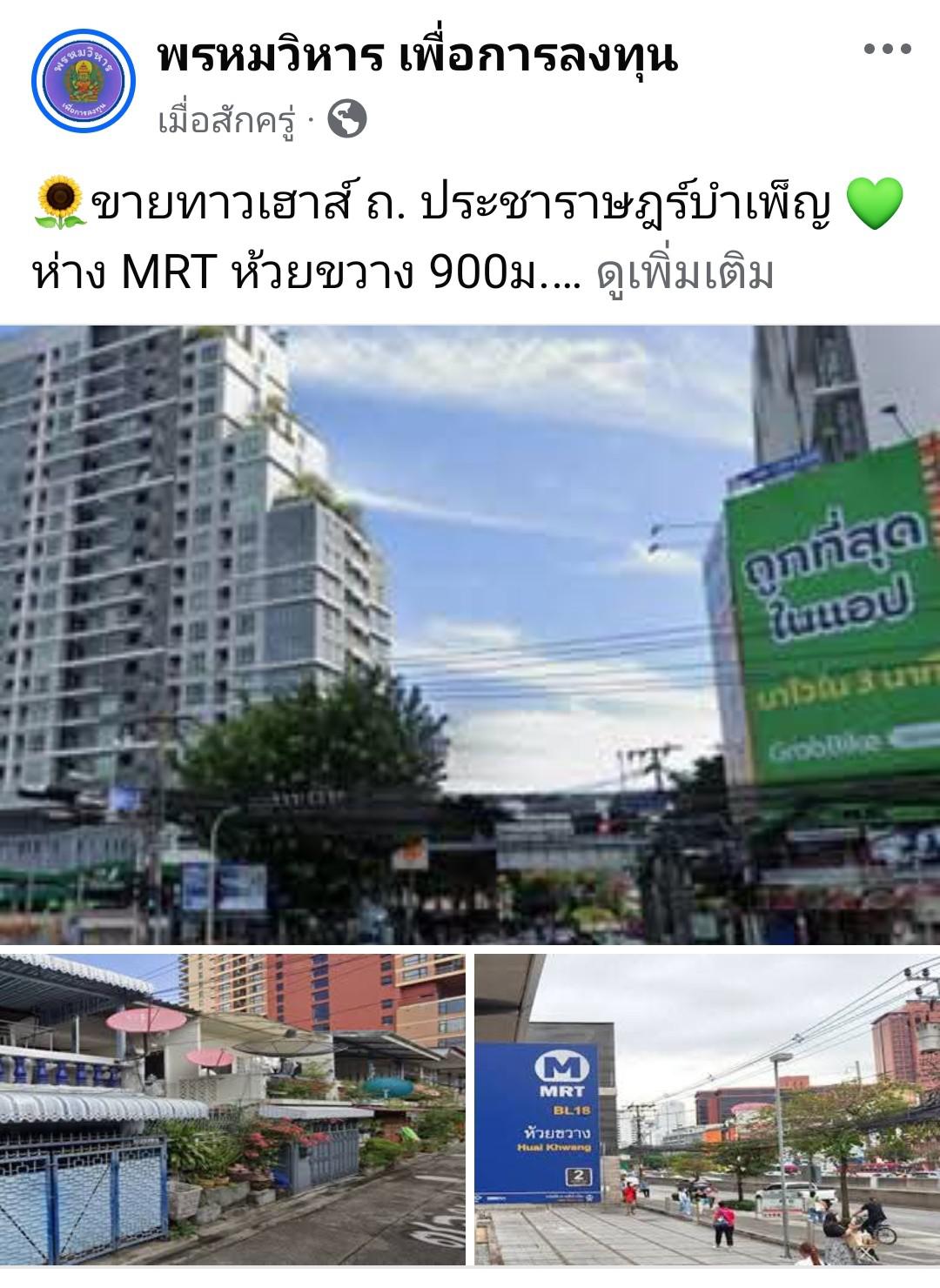 ขายทาวเฮาส์ ถ. ประชาราษฎร์บำเพ็ญ ห่าง MRT ห้วยขวาง 900ม.