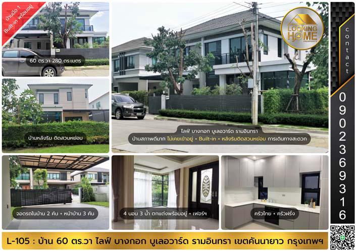H-105 : บ้านใหม่ แต่งสวย ไม่เคยเข้าอยู่ 60 ตร.วา ไลฟ์ บางกอก บูเลอวาร์ด รามอินทรา