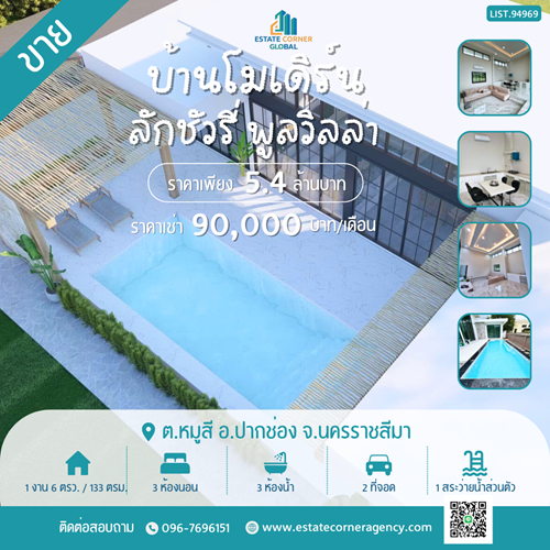 ขายบ้านโมเดิร์น ลักชัวรี่พูลวิลล่า 3 ห้องนอน 3 ห้องน้ำ พร้อมสระว่ายน้ำส่วนตัว ทำเลใกล้เขาใหญ่ เพียง 5.4 ลบ