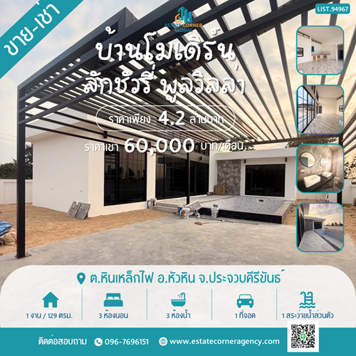 ขายบ้านโมเดิร์น ลักชัวรี่พูลวิลล่า 3 ห้องนอน 3 ห้องน้ำ พร้อมสระว่ายน้ำส่วนตัว ใกล้ชะอำ–หัวหิน ราคาเพียง 4.2 ลบ.