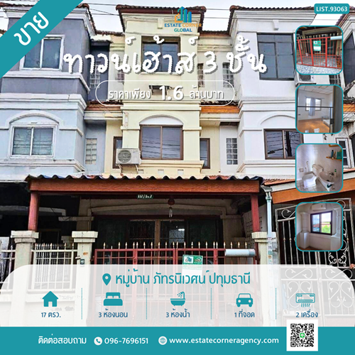 ขายทาวน์เฮ้าส์ 3 ชั้น 17 ตร.ว. ต่อเติมเต็มพื้นที่ 3 ห้องนอน ทำเลติดถนนใหญ่ กรุงเทพ–ปทุมธานี ราคาเพียง 1.6 ลบ.