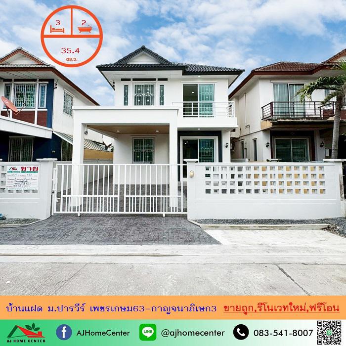 รีโนเวทใหม่ขาย3.89ล้าน บ้านแฝด35.4ตรว. ม.ปารวีร์ เพชรเกษม63-กาญจนาภิเษก3 ฟรีโอน