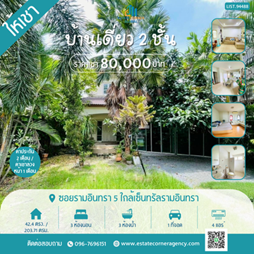 ให้เช่า บ้านเดี่ยว 2 ชั้น เนื้อที่ 117 ตรว. ตัวบ้านพื้นที่ใช้สอย 203.71ตรม.ตกแต่งสวยน่าอยู่ ซอยรามอินทรา 5 ใกล้เซ็นทรัลร