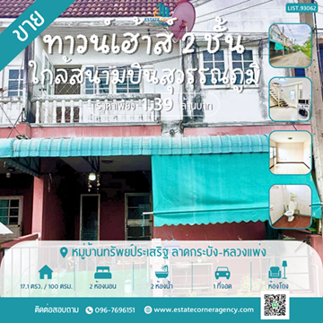 ขายบ้านทาว์นเฮ้าส์ 2 ชั้น มบ.ทรัพย์ประเสริฐ 17.1 ตร.วา ทำเลลาดกระบัง-หลวงแพ่ง ใกล้สนามบินสุวรรณภูมิ