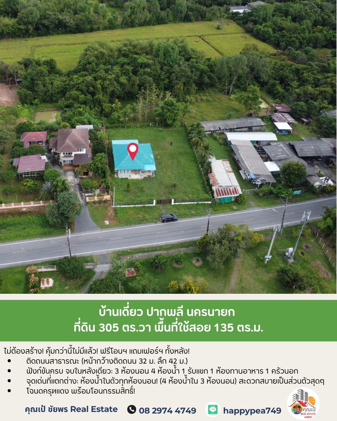 ติดถนนสาธารณะ] ที่ดิน 305 ตร.วา พร้อมบ้าน 3 นอน 4 น้ำ! ซื้อปุ๊บ มีรายได้ปั๊บ! ทำเลทอง ปากพลี นครนายก