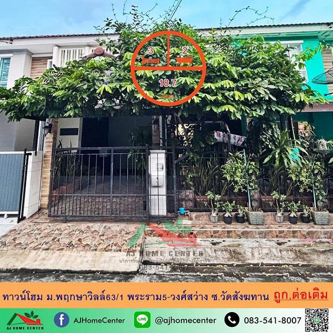 ขายถูก2.19ล้าน ทาวน์โฮม18.7ตรว. ม.พฤกษาวิลล์63/1 พระราม5-วงศ์สว่าง ซ.วัดสังฆทาน ต่อเติมพร้อมอยู่