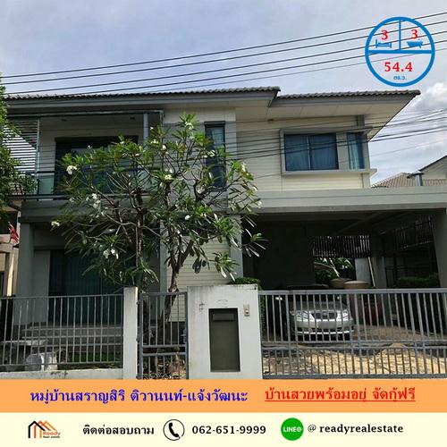 ขายบ้านเดี่ยว 54.4 ตรว หมู่บ้านสราญสิริ ติวานนท์-แจ้งวัฒนะ บ้านสวยพร้อมอยู่ จัดกู้ฟรี