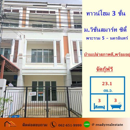 ขาย ทาวน์โฮม 3 ชั้น 23.1 ตร.ว ม.วิชั่นสมาร์ท ซิตี้ พระราม 5 – นครอินทร์ บ้านเปล่าสภาพดีพร้อมอยู่ จัดกู้ฟรี