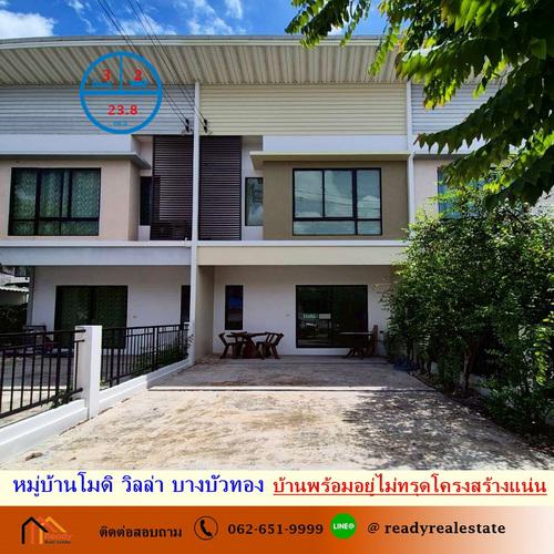 ขาย ทาวน์เฮ้าส์ 23.8 ตร.ว ม.โมดิ วิลล่า บางบัวทอง บ้านพร้อมอยู่ไม่ทรุดโครงสร้างแน่น ทำเลดีใกล้ตลาดสมบัติบุรี