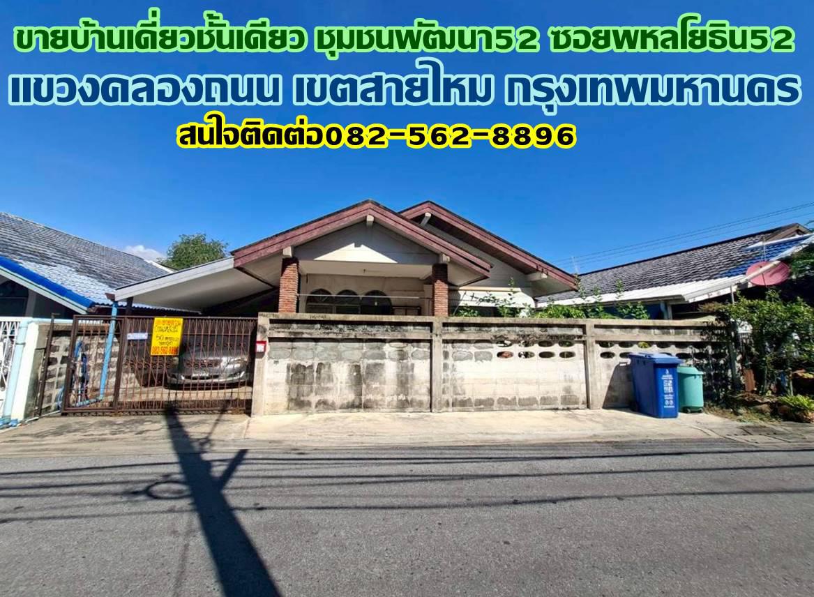 ขายบ้านเดี่ยวชั้นเดียว ชุมชนพัฒนา52 ซอยพหลโยธิน52 ตรงข้ามตลาดยิ่งเจริญ ใกล้รถไฟฟ้าBTSสถานีสะพานใหม่