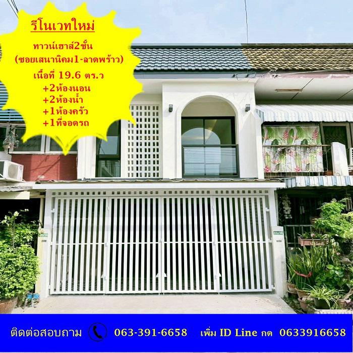 ขายทาวน์เฮ้าส์รีโนเวทใหม่ เนื้อที่ 19.6 ตร.ว (ซอยเสนานิคม1-ลาดพร้าว) หน้าบ้านหันไปทางทิศตะวันตก พร้อมอยู่