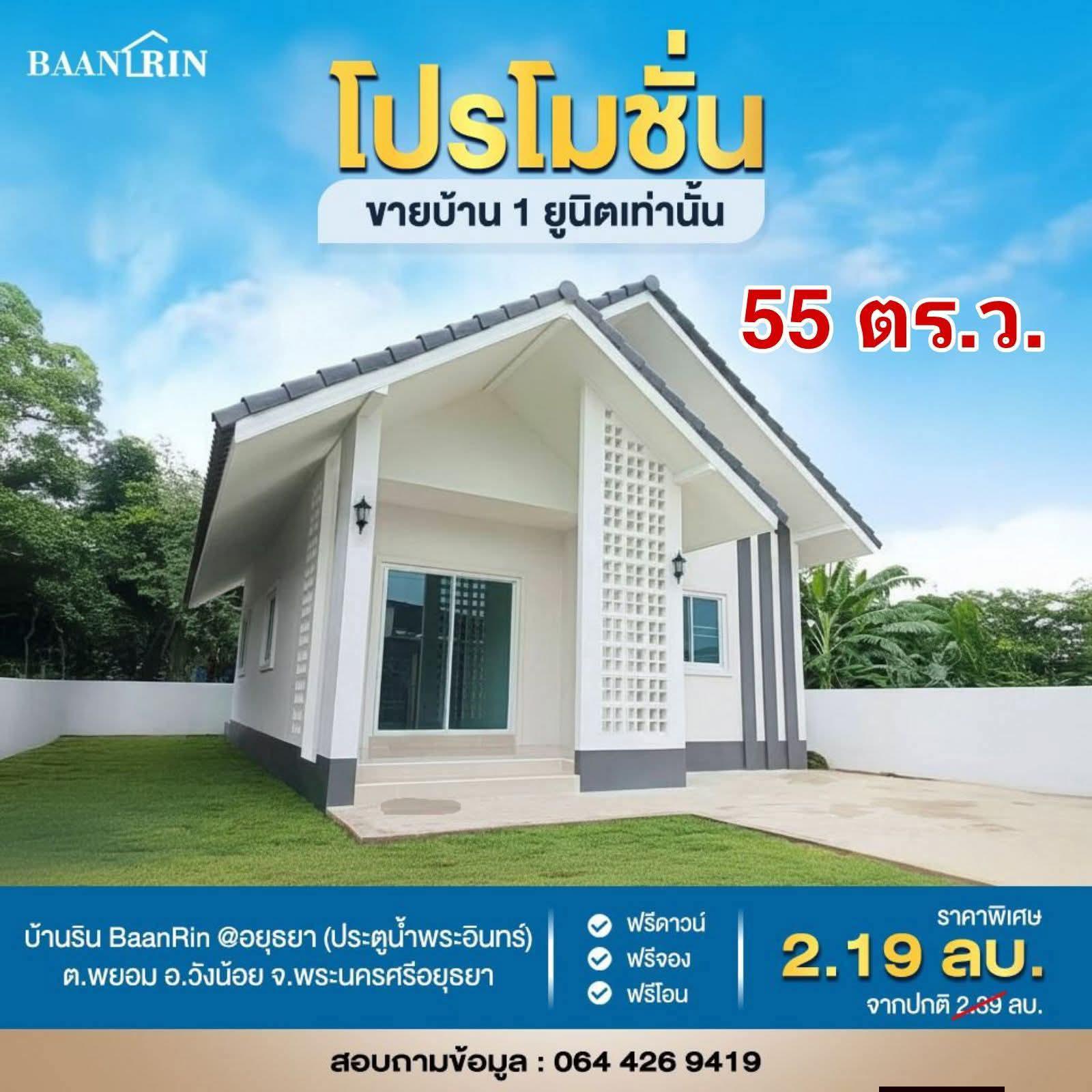 ขายบ้านเดี่ยว สร้างใหม่ ราคาโปรโมชั่น 2.19 ลบ./55 ตร.ว. จากราคาปกติ 2.39 ลบ. ราคานี้ถึง 31 ธ.ค.68