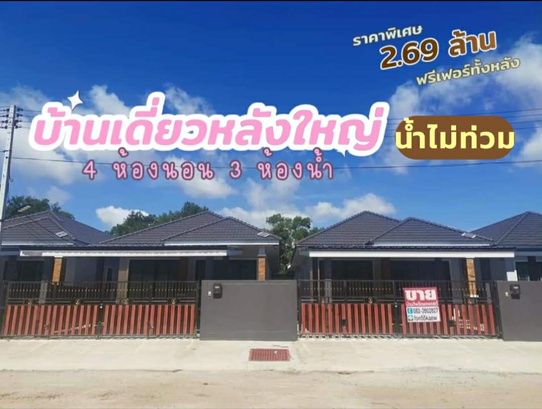 บ้านเดี่ยวชั้นเดียวทำเลดีใกล้สนามบินหาดใหญ่ พื้นที่ 60 ตรว. 4 ห้องนอน 3 ห้องน้ำ พร้อมพื้นที่โรงจอดรถ 2 คัน
