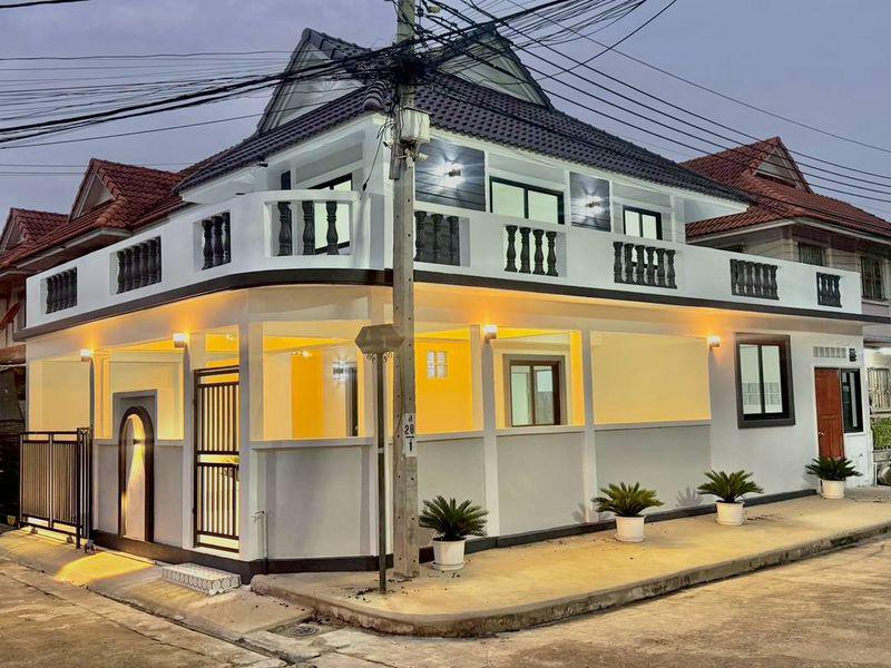 บ้านรีโนเวทใหม่แบบจัดเต็มทั้งหลัง อยู่ถนนเมน หลังมุม หน้าบ้านกว้าง 6 เมตร สวย พร้อมอยู่ ต่อเติมเทอเรสหน้าบ้าน และต่อเติมครัวแล้ว