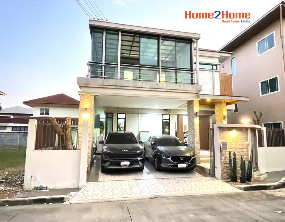บ้านเดี่ยว 2 ชั้น สภาพดี เนื้อที่ 61.3 ตร.วา พื้นที่ใช้สอยจริง 260 ตรม. 3 ห้องนอน 4 ห้องน้ำ ครัวบิวท์อิน เครื่องปรับอากาศ 5 เครื่อง ที่จอดรถ 2 คัน พร้อมประตูรีโมท ติดตู้ไฟฟ้าที่ชาร์จรถยนต์ไฟฟ้า พื้นบ้านชั้นบนและบันไดทำด้วยไม้แท้ บ้านสวยพร้อมอยู่ได้เลย ทำเลดี