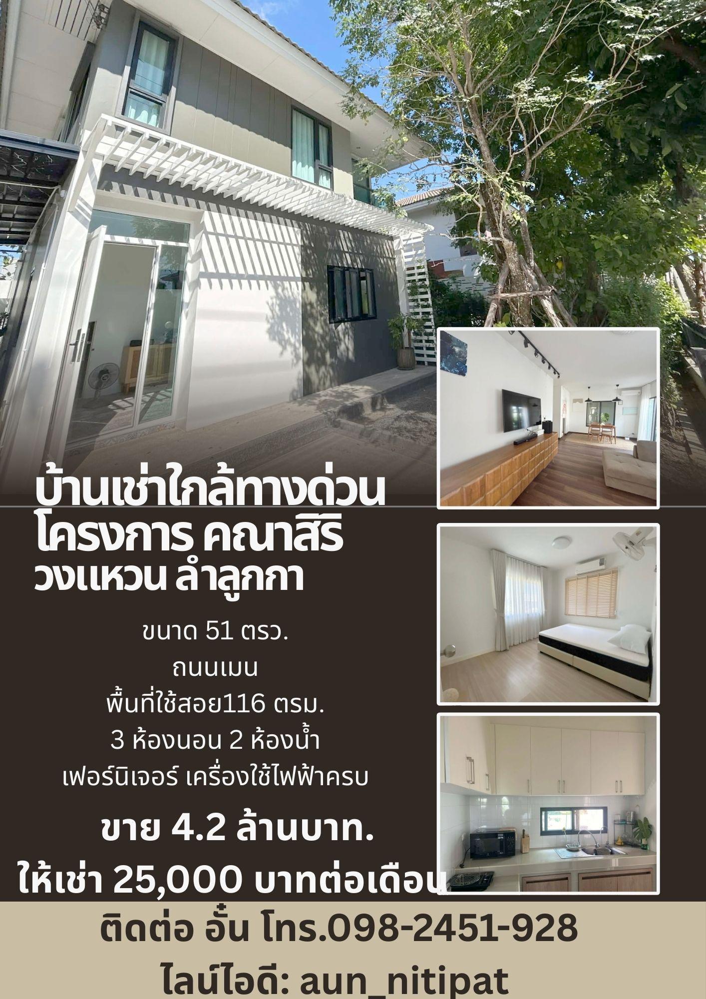 บ้านเช่าใกล้ทางด่วน วงแหวน โครงการ คณาสิริ วงแหวน ลำลูกกา