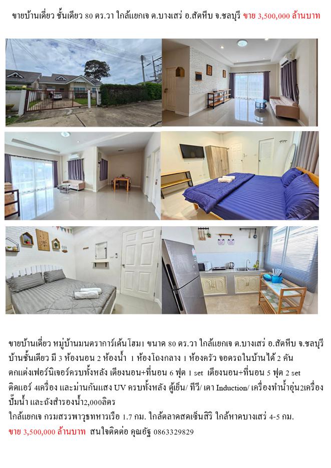 ประกาศที่ท่านเห็นอยู่นี้เป็นประกาศที่ผู้ต้องการซื้อขาย (อาจเป็นเจ้าของหรือนายหน้า) ได้นำเนื้อหาและรูปภาพมาลงไว้ด้วยตนเอง กรุณาตรวจสอบข้อมูลผู้ซื้อขาย และตรวจสอบอสังหาริมทรัพย์ก่อนทำการซื้อขายจริง ข้อมูล/รูปภาพผู้ประกาศจะรับผิดชอบทั้งหมด