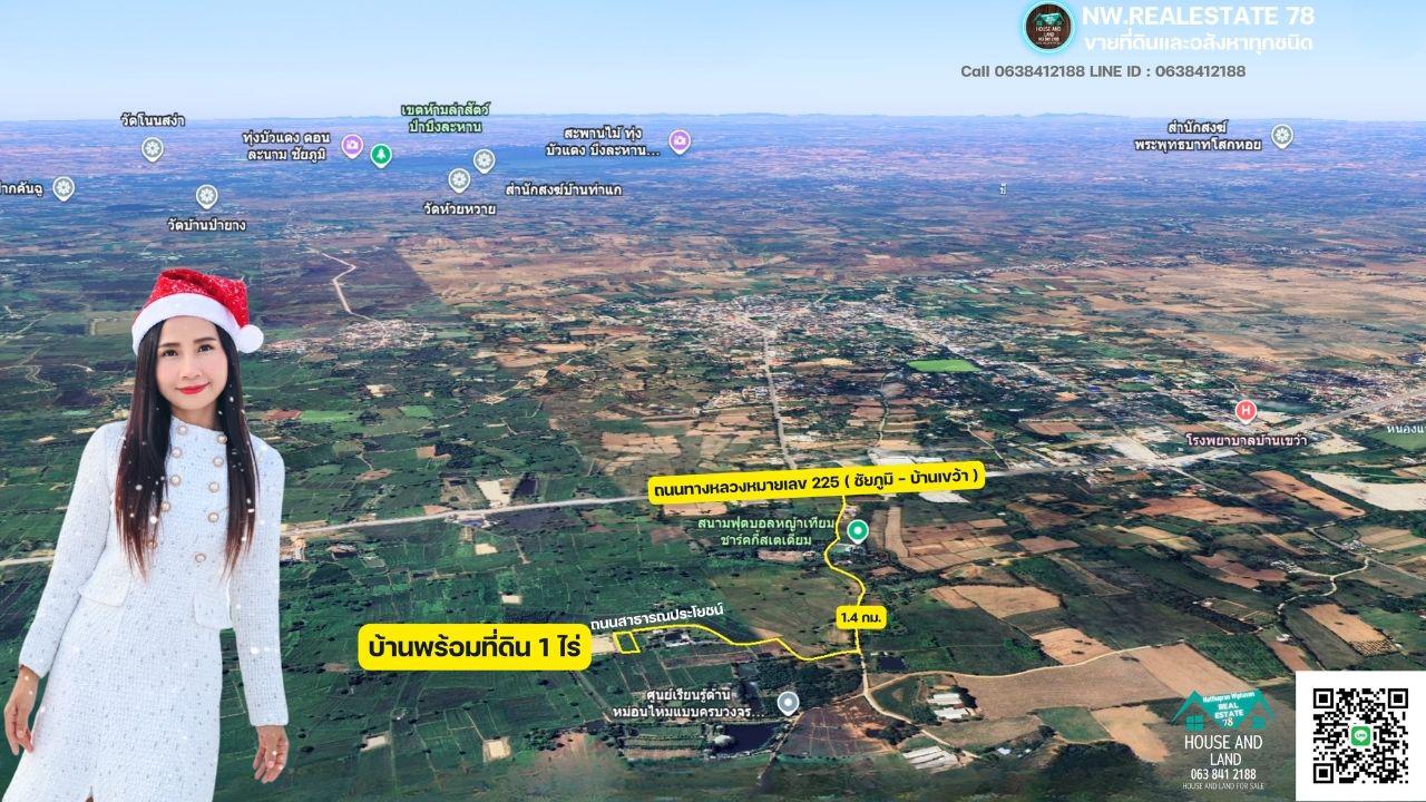 ขายบ้านพร้อมที่ดิน 1 ไร่ ติดถนนสาธารณปรโยชน์ วิวธรรมขาติ ใกล้ตัวอำเภอบ้านเขว้า ขากถูกสุดๆ