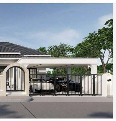 บ้านเดี่ยวชั้นเดียว สไตล์โมเดิร์นคลาสสิก (Modern Classic ) ฝ้าเพดานโปร่งโล่ง ขนาดที่ดิน 76 ตารางวา 3 ห้องนอน 4 ห้องน้ำ
