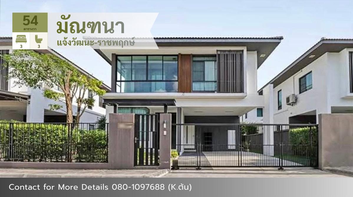 ขายบ้านเดี่ยวเฟสใหม่ (พร้อมผู้เช่า) หมู่บ้านมัณฑนา แจ้งวัฒนะ-ราชพฤกษ์ พื้นที่ 54 ตรว.