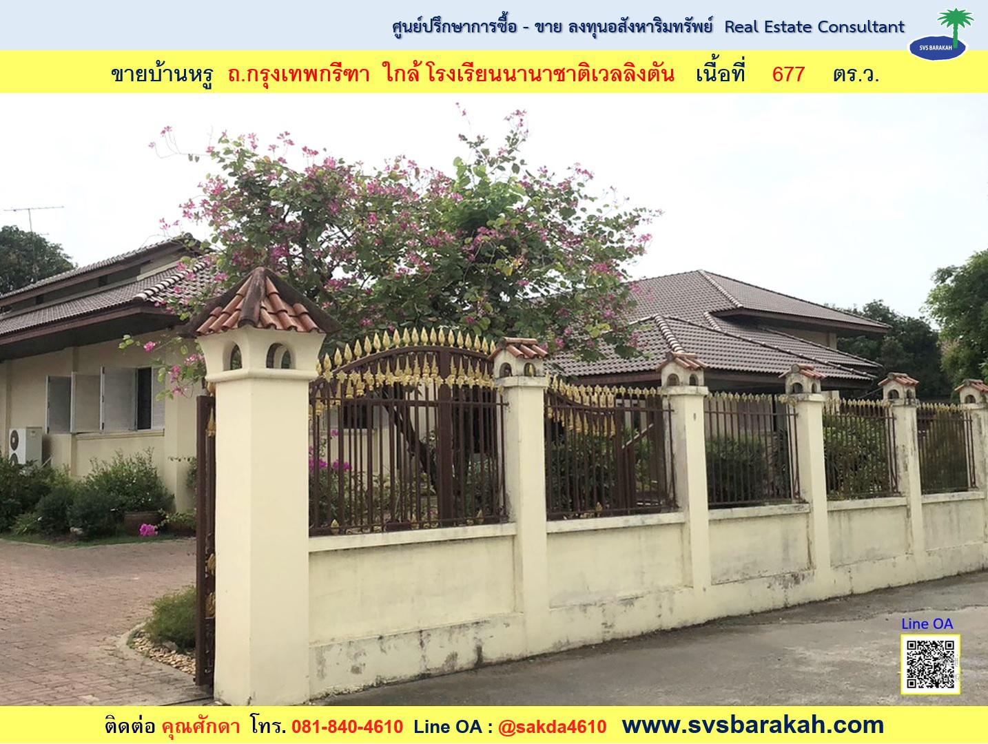 ขาย บ้านเดี่ยว ถ.กรุงเทพกรีฑา เนื้อที่ 677 ตร.ว. ใกล้ ร.ร.นานาชาติเวลลิงตัน