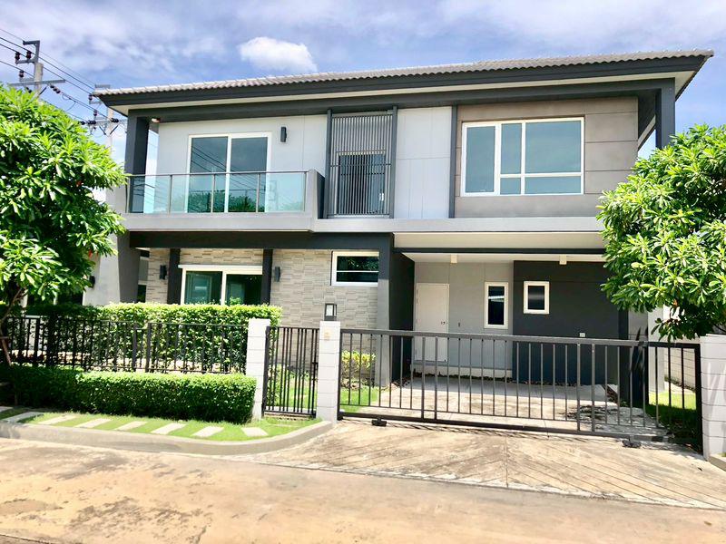 บ้านยังไม่เคยมีคนเข้าพักอาศัย บรรยากาศภายในโครงการเงียบสงบเป็นส่วนตัว พร้อมสวนสวยๆ ร่มรื่น