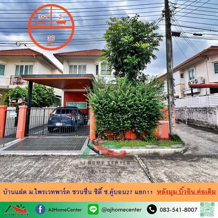 ขายบ้านแฝด36ตรว. หลังมุม ม.ไพรเวทพาร์ค ชวนชื่น ซิตี้ ซ.คู้บอน27 แยก11 บิ้วอิน ต่อเติมพร้อมอยู่