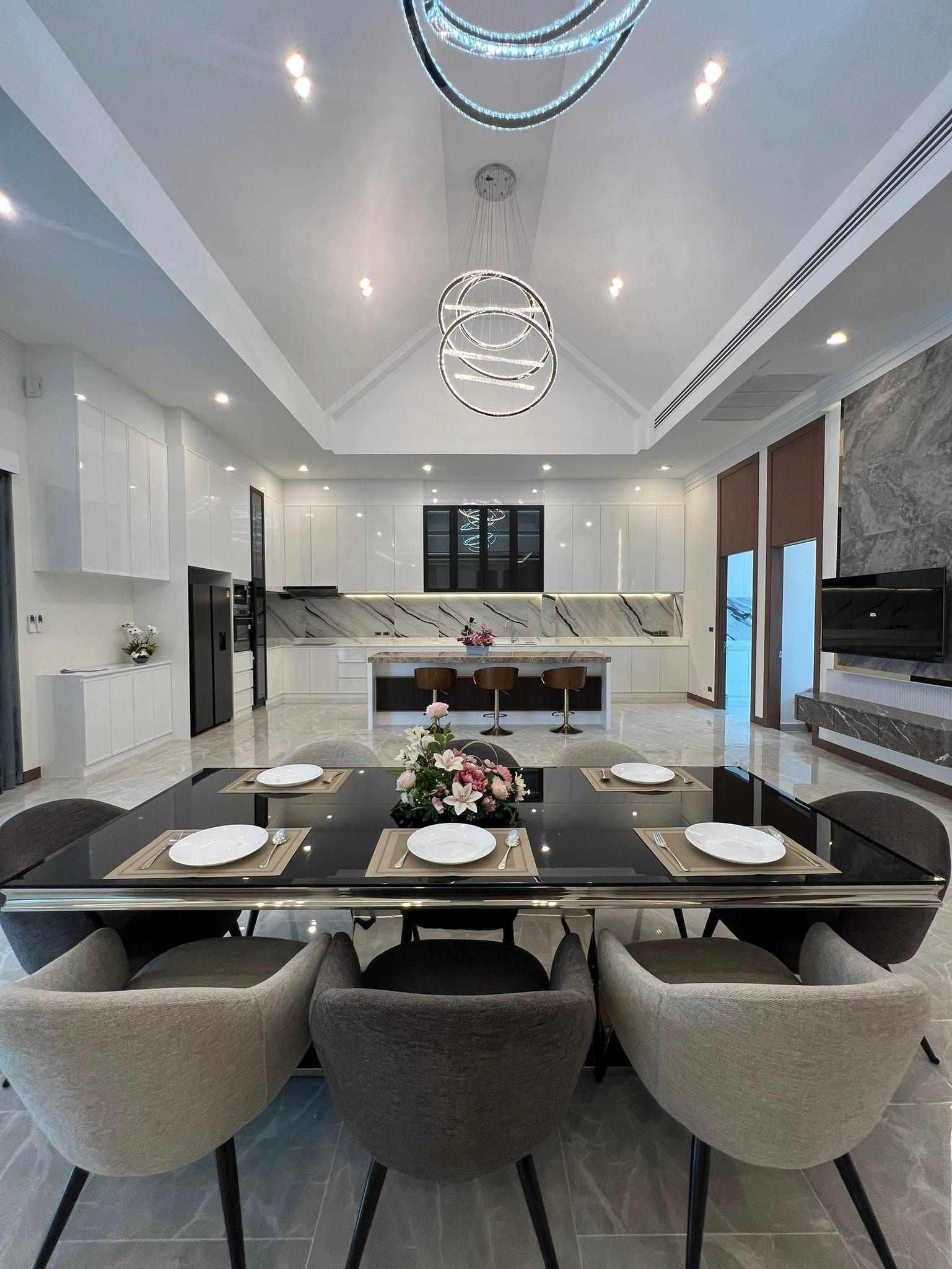 • ครัวยุโรปขนาดใหญ่ (ยาว 6 ม.) + island bar 3 ที่นั่ง