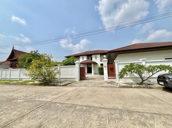 ตัวบ้านล้อมรอบด้วยสวน พร้อมเรือนไทยเก่าตั้งอยู่ด้านข้าง พื้นที่สวนกว้างเพียงพอสำหรับสร้างสระว่ายน้ำเพิ่มเติมได้