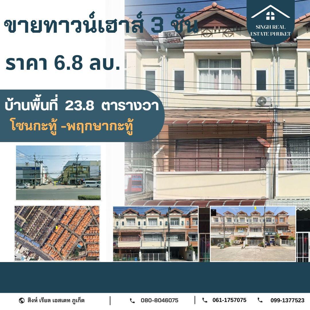 ** HOUSE FOR SALE ** ขายทาวน์เฮาส์ 3 ชั้น ขนาด 23.8 ตรว. ( หมู่บ้านพฤกษากะทู้ )