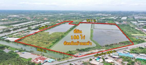 ขายที่ 188 ไร่ เดินทางสะดวก ติด ถนนบ้านแพ้ว ใกล้ฝั่งพระราม 2 ใช้งานง่าย ติดถนนทั้งหน้าและหลัง