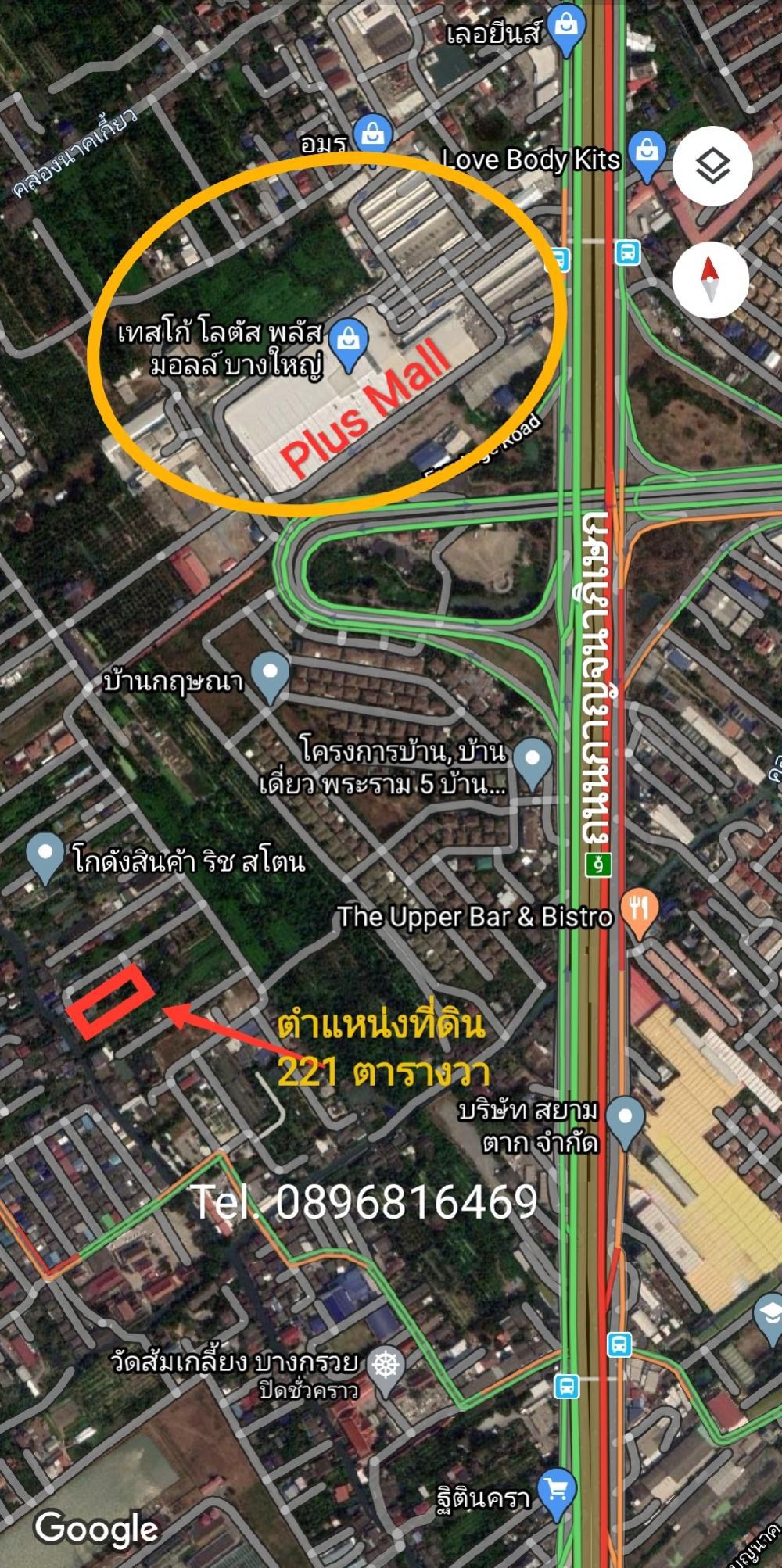 ขายที่ดินเปล่า ถนนกาญจนาภิเษก ซอยวัดส้มเกลี้ยง หลังพลัสมอลล์ บางใหญ่ นนทบุรี