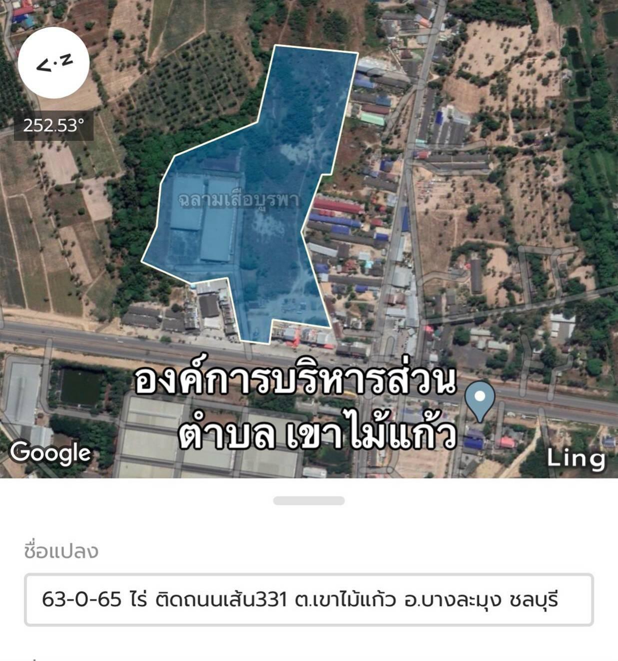 ขายที่ดินตั้งอยู่ติดถนนเส้น 331 ยาวประมาณ 50 ม. ต.เขาไม้แก้ว อ.บางละมุง จ.ชลบุรี เนื้อที่ 60 ไร่กว่า พร้อมอาคารโกดัง
