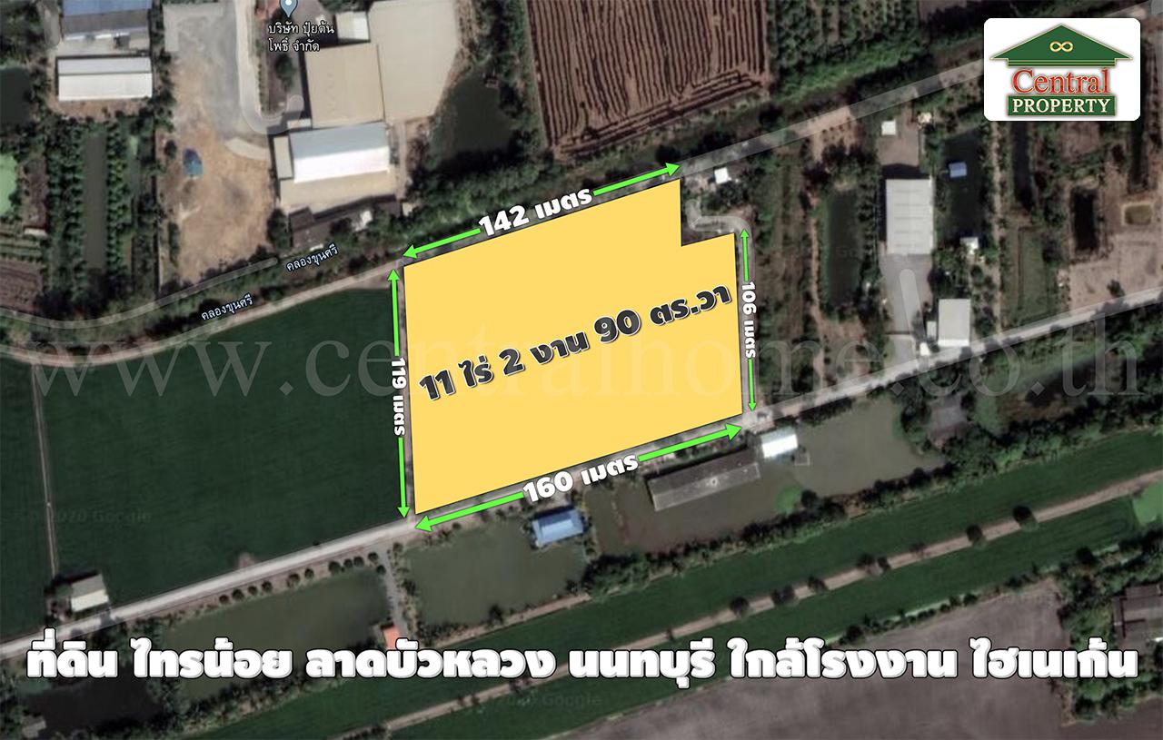 ที่ดินเปล่า 11-2-90 ไร่ ติดถนน ไทรน้อย - ลาดบัวหลวง ใกล้โรงงานไฮเนเก้น